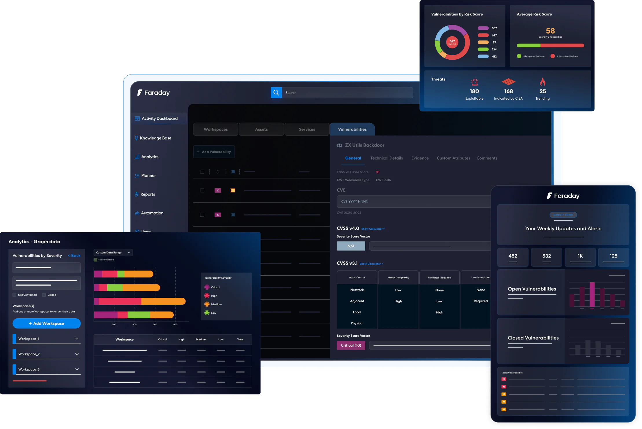Faraday actúa como el centro de control para la mejora continua de la seguridad. No se limita al escaneo, sino que contextualiza hallazgos según riesgo real, agiliza procesos y alinea seguridad con operaciones. Menos ruido, mayor impacto.